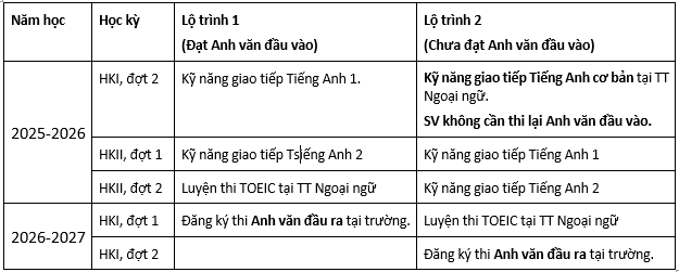 PHẦN 2. LỘ TRÌNH HỌC CHƯƠNG TRÌNH KỸ NĂNG GIAO TIẾP TIẾNG ANH VÀ CHUẨN ĐẦU RA TIẾNG ANH (Giải thích về Lộ trình học Tiếng Anh của Khóa 2023, 2024, 2025)