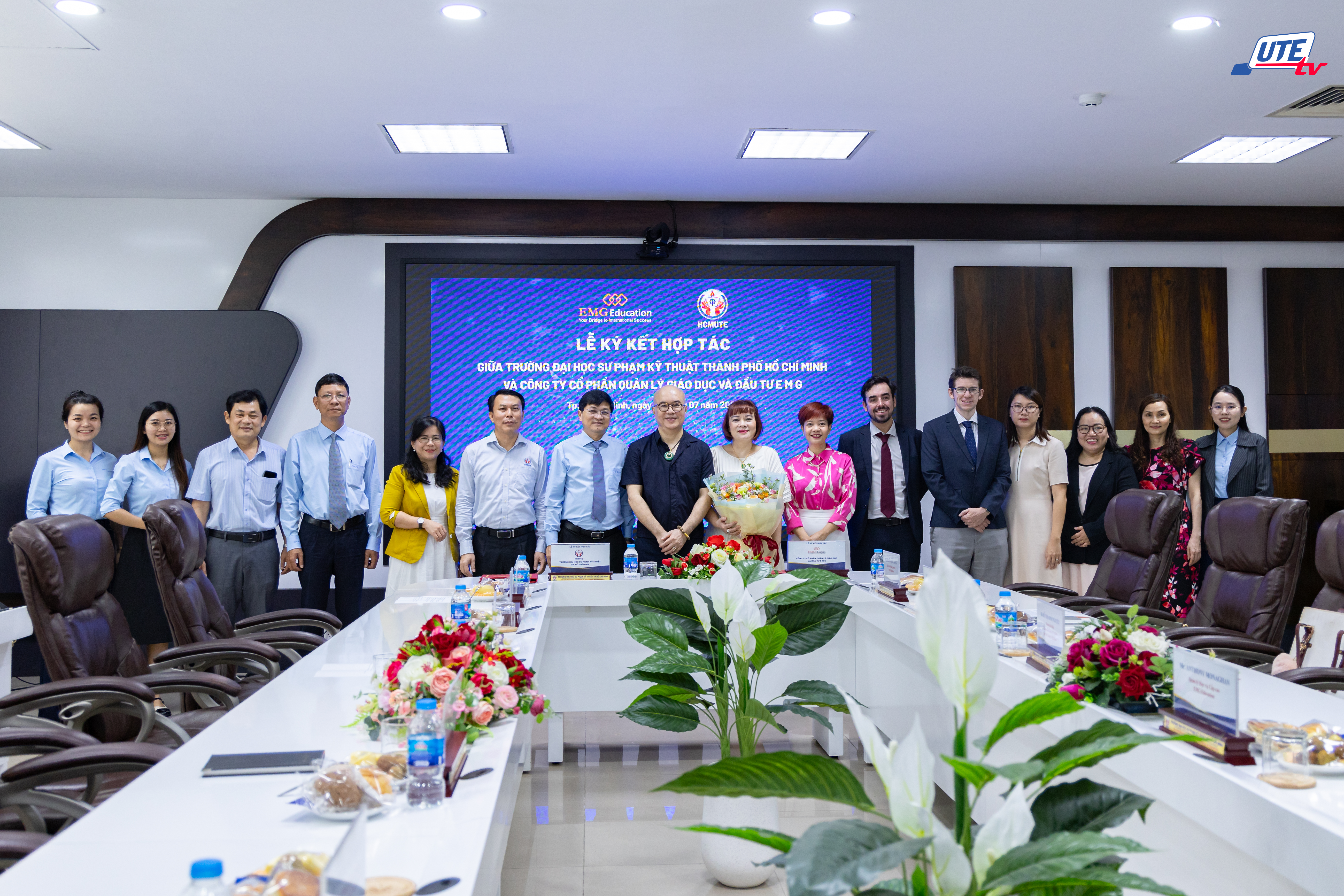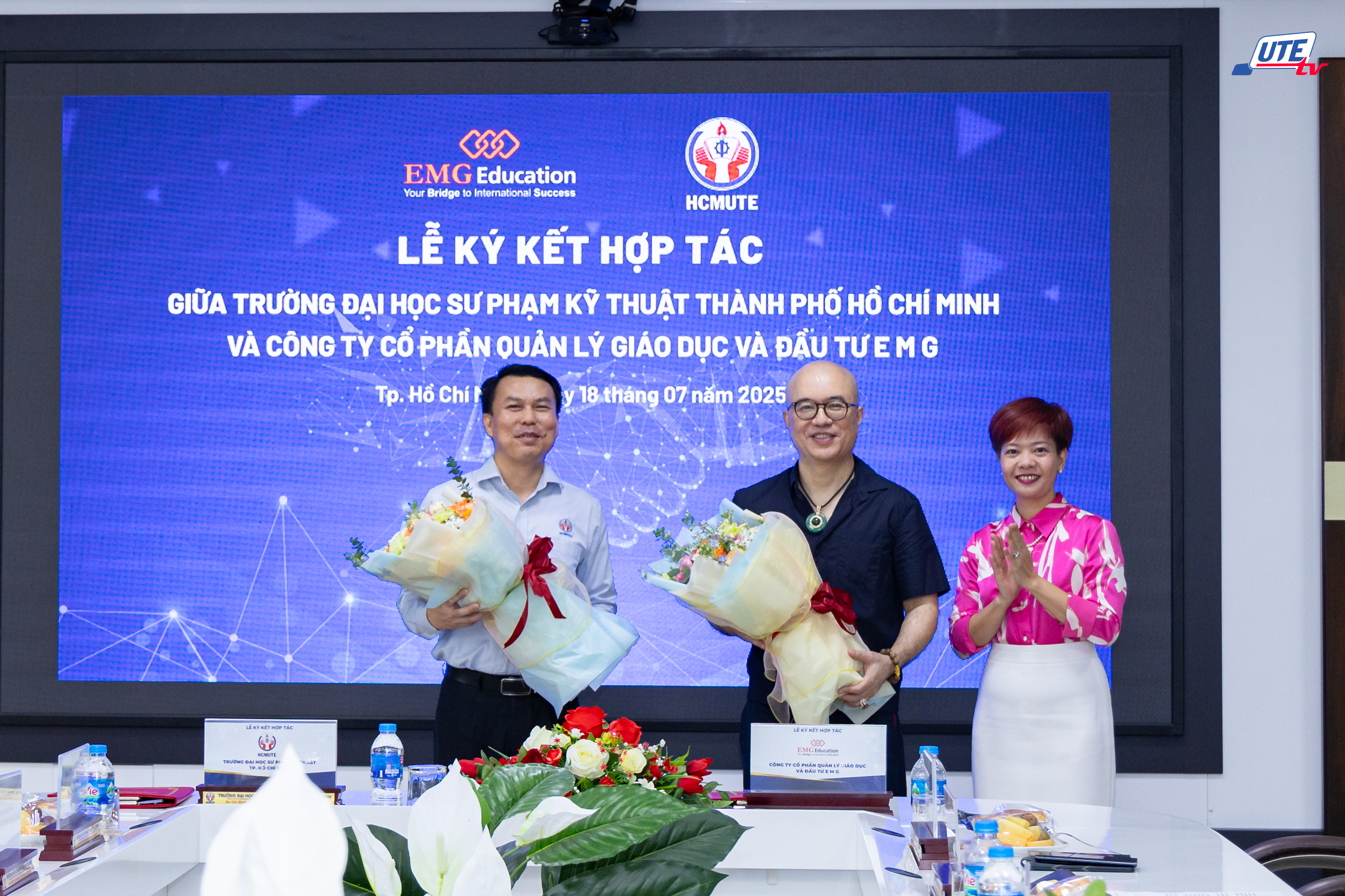 Sáng ngày 18/7/2025, tại Trường Đại học Sư phạm Kỹ thuật TP.HCM (HCMUTE) đã diễn ra lễ ký kết thỏa thuận hợp tác giữa HCMUTE và Công ty Cổ phần Quản lý Giáo dục và Đầu tư EMG (EMG Education), nhằm triển khai rộng rãi Chứng chỉ tiếng Anh quốc tế Pearson English International Certificate (PEIC) trong hệ thống đào tạo của nhà trường. Sự kiện đánh dấu bước tiến quan trọng trong chiến lược nâng cao năng lực ngoại ngữ và chuẩn hóa đầu ra tiếng Anh cho sinh viên, góp phần thúc đẩy hội nhập giáo dục quốc tế.